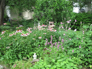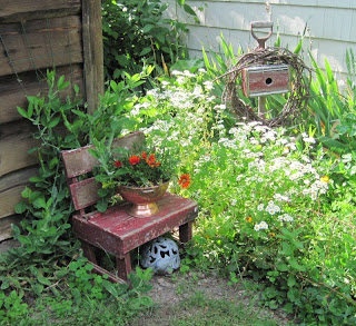 My 'wild' garden is getting pretty wild! Right now there are mostly daisies, yellow loosestrife and Red Huckster (actually white blooms with red stems) blooming.