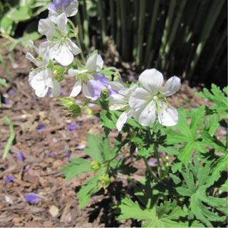 I love this new Splish Splash Cranesbill I just got. It's mostly white but there is purple here and there. Sometimes a whole petal and sometimes just a 'splash'.